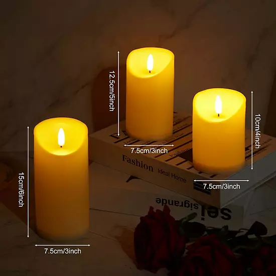 - Package Includes: 3 x Flickering Flameless Candles, 1 x 10-Key Remote Control, 1 x USB Charging Cable