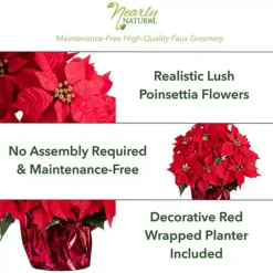 Nearly Natural 19-in. Artificial Lush Poinsettia Arrangement