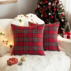 Pack Of 2 Festive Plaid Decorative Throw Pillow Covers Scottish Tartan Square Cushion Covers 18″x18″
