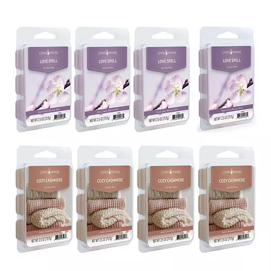 Warm your home with the light aromas of this Candle Warmers Etc. 2.5-oz. Love Spell & Cozy Cashmere Variety Wax Melts 48-piece Set.