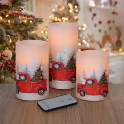 Lavish Home Faux Birch Bark Flickering Flameless LED Candle Table Decor & Remote 4-piece Set