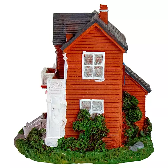 This sweet little colonial house is the perfect addition to your Christmas village display. Illuminated with an LED warm white bulb it offers the perfect soft glow. Exquisite detail from the landscaping to the dormers . Battery operated means it can be placed anywhere. Product Features: Battery operated Christmas village house. Pre-lit with 1 LED warm white bulb. requires 2 AAA batteries – not included. Timer function. Convenient on/off switch on the bottom. Recommended for indoor use only. Dimensions: 4.5H x 4.75W x 4.5D. Material(s): polyresin