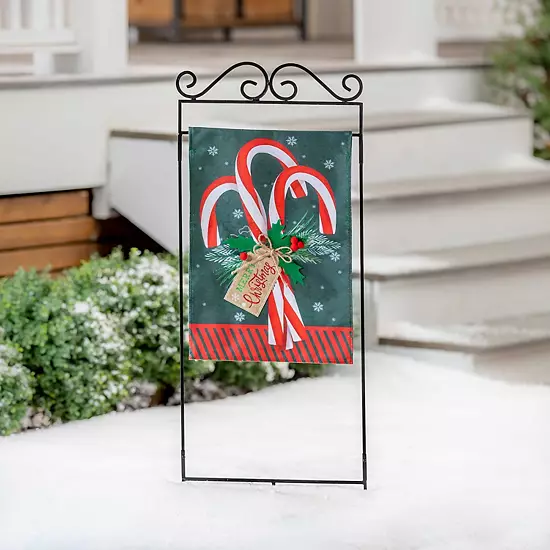 Spice up your outdoor area with this Evergreen Enterprises Candy Cane Burlap Garden Flag.