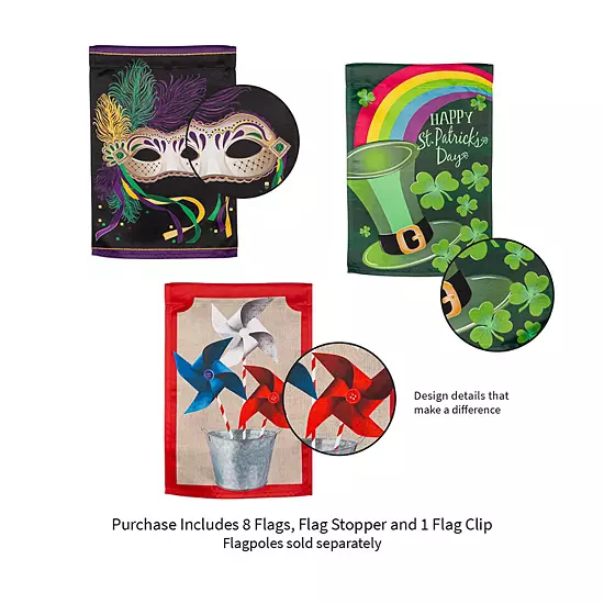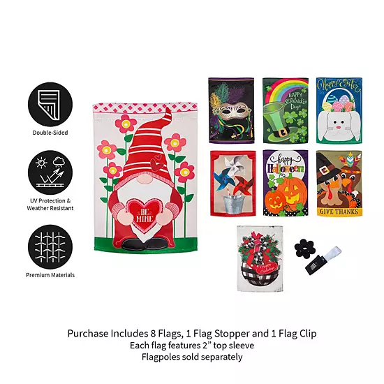 Add whimsical style to your yard with this Evergreen Enterprises Seasonal garden flag 8-piece set.