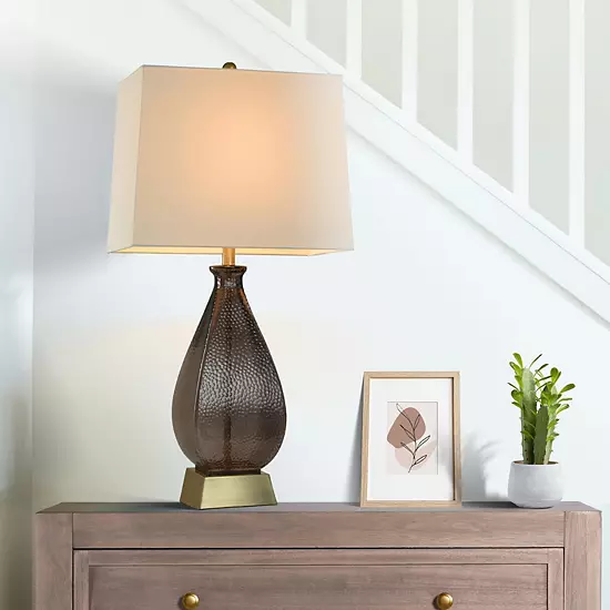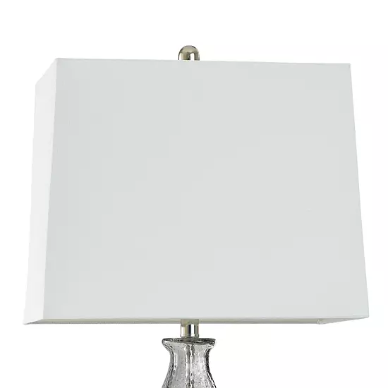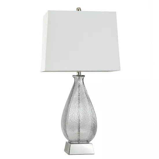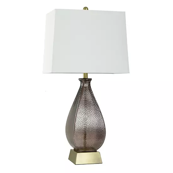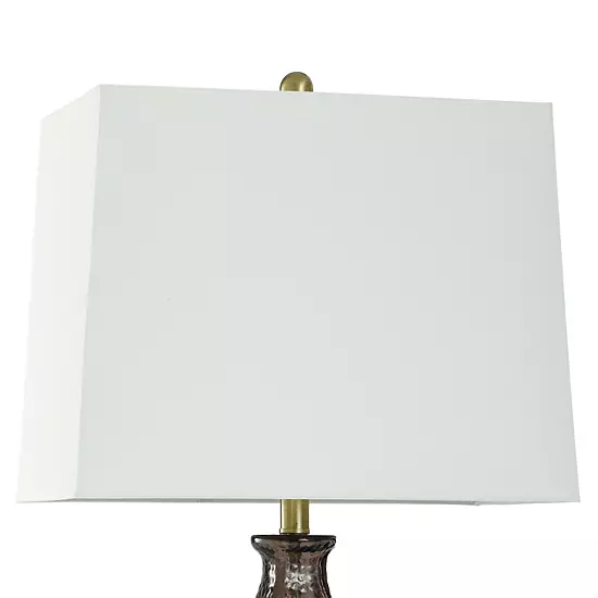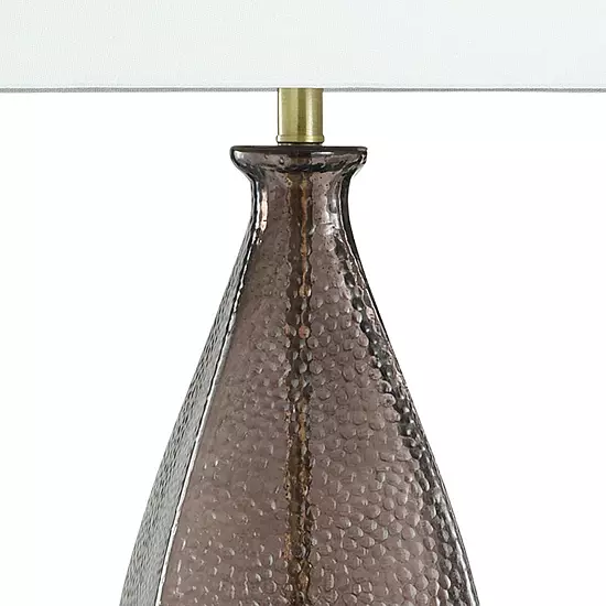 The perfect accent piece for any home, this Grey Dimpled Table Lamp with White Lamp Shade adds the perfect touch to your space.