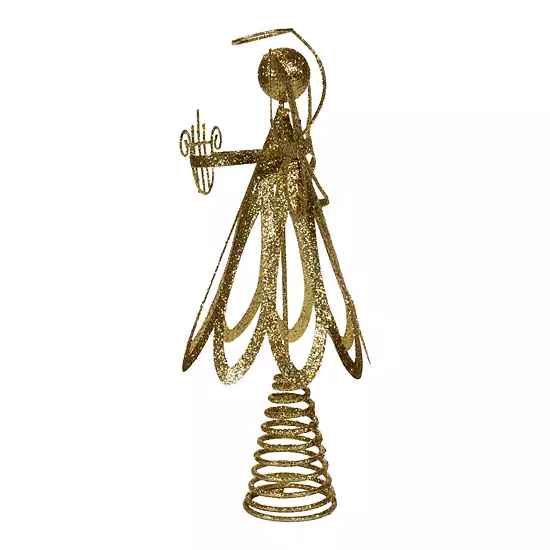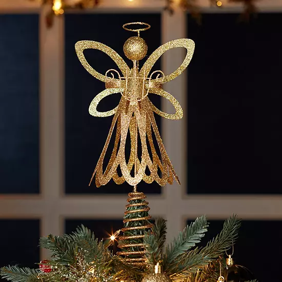 Showcase your love for all things festive with this Gold Finish Glitter Angel Christmas Tree Topper.
