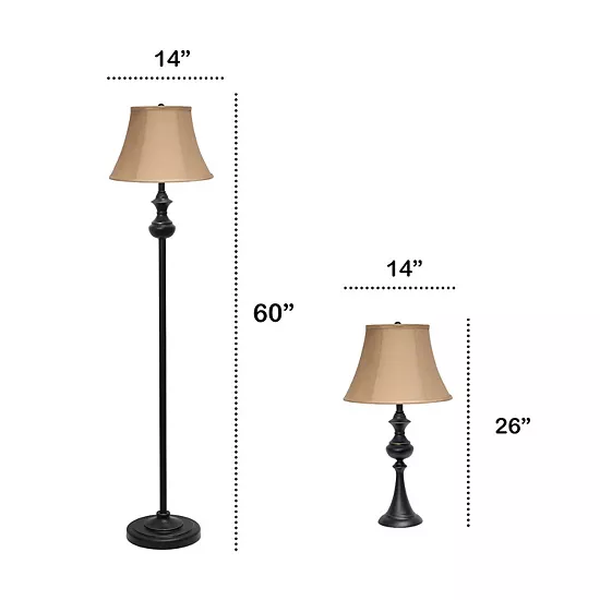 - Includes: 2 table lamps, 1 floor lamp, 3 lamp shades