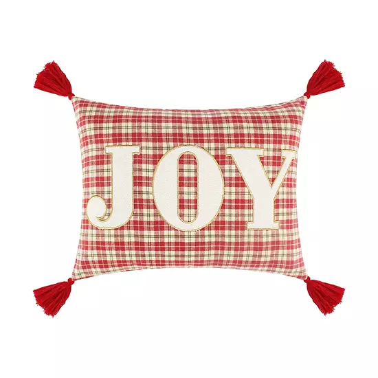 Give your holiday decor a rustic refresh with this plaid tasseled “Joy” throw pillow from Levtex Home.