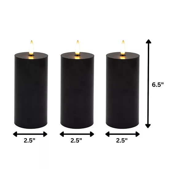 Transform your space with the enchanting glow of LumaBase Luminarias’ sleek 3D wick pillar candles. Featuring a flickering warm white LED light and a beautiful pivoted flame-shaped wick, these weather-resistant candles effortlessly create a cozy ambiance without the worry of real flames.
