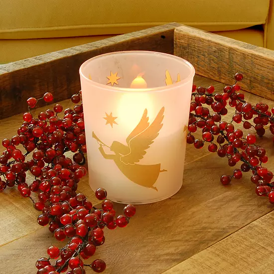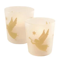 - Set of 2 LED Wax Candles Filled in Glass Holders with Gold Angel Design