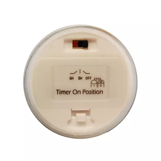 - Flameless Amber LED LightTimer: 6 and 8 Hour