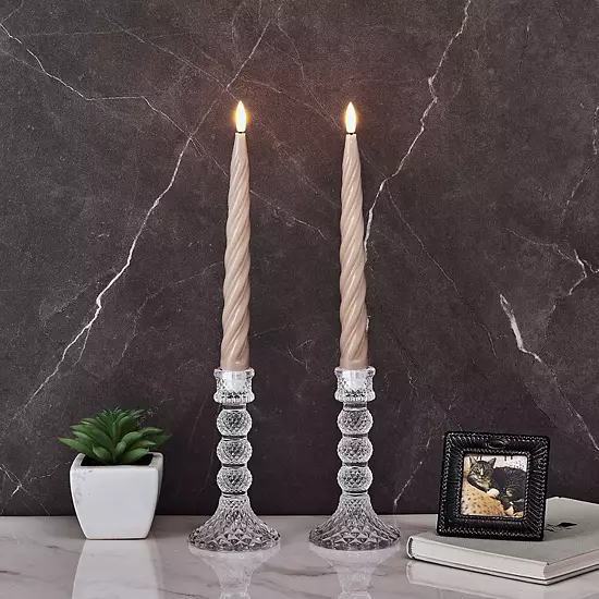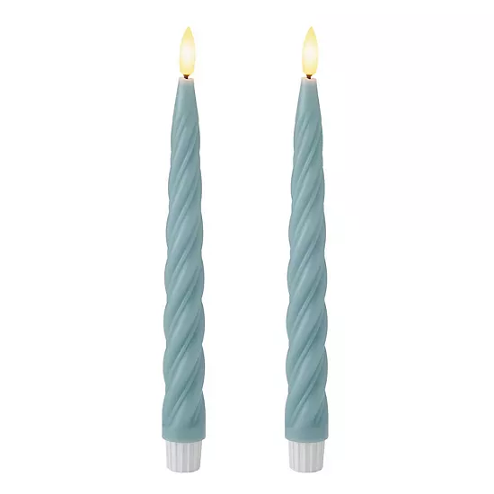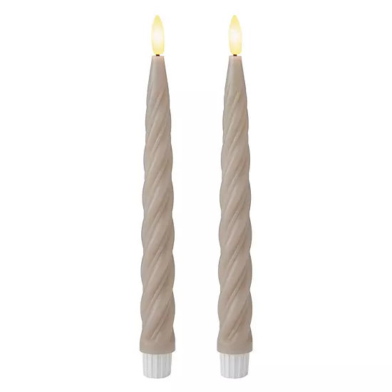 Safely create an elegant, warm lighting scheme in any room these Mikasa Set of 2 Grey Twist LED 10-in. Wax Taper with Flickering Light, designed to emit a flickering effect.