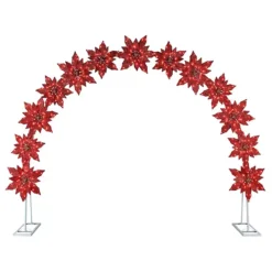 Add a touch of festive flair to your outdoor space with this illuminated poinsettia arch, perfect for welcoming guests during the holiday season. With 13 beautifully arranged flowers and warm LED lights twinkling like a starry night, it transforms any entrance into a magical holiday wonderland while being sturdy enough to brave the elements all winter long.