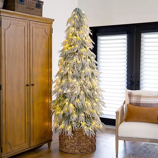 - Flocked finish mimics freshly fallen snow for a winter wonderland effect
