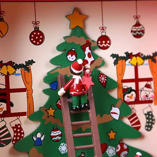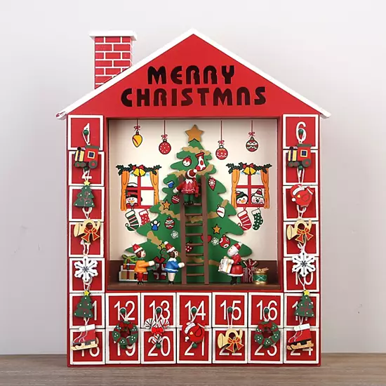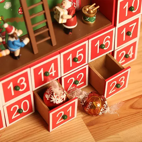 This fantastic advent calendar is made of wood with 24 drawers. The structure of square frame can stand on the desktop, windowsill and be fixed on wall. It can create a warm festive atmosphere. Each drawer can be filled with candy, or a small gift, or a clue of bigger gift so that a child can find them out with fun. The memory of countdown of the Christmas during childhood will be a tradition that a person treasures for a life. Dimensions: Width 31cm x Height 38cm x Thickness 5.5 cm.