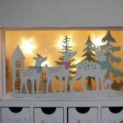 Polar Elegance Wooden Christmas Advent Calendar Book With Led-lit Winter Forest Scene – 24 Drawers