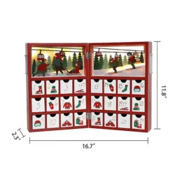 Polar Elegance Christmas Wooden Advent Calendar Book With LED Lighting Red Christmas Skiing Scenes