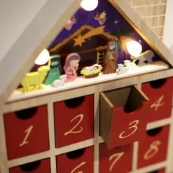 Polar Elegance LED Wooden Nativity Advent Calendar House With 24 DrawersFoldable Holiday Gifts