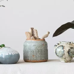 Storied Home Round Terra-cotta Hobnail Planter Vase With Heavily Distressed Finish