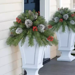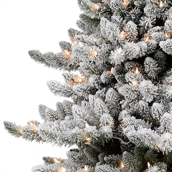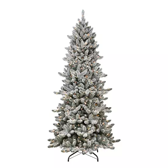 Ensure you’re ready for the holiday season with this beautiful PULEO INTERNATIONAL Pre-Lit 7.5′ Slim Flocked Royal Majestic Spruce Artificial Christmas Tree.