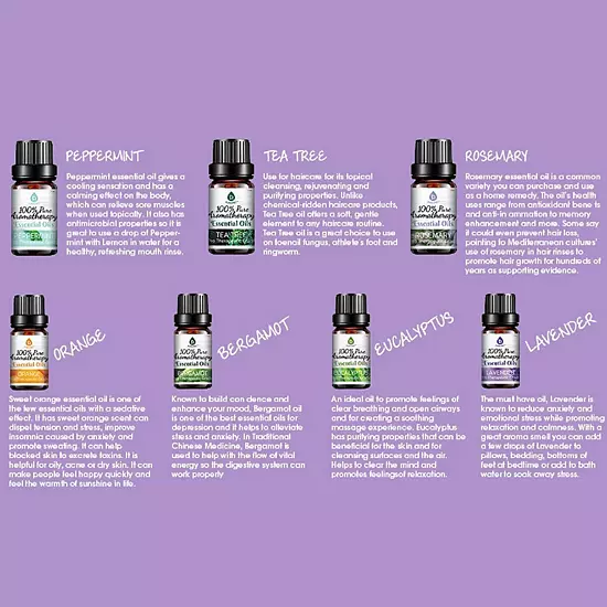 - 100 percent Pure Therapeutic Essential Oils, no fillers, additives, bases or carriers added
