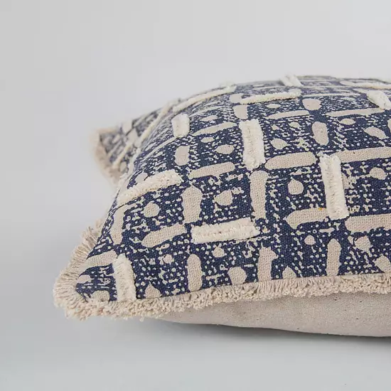 Elevate your decor with the striking Rizzy Home throw pillow cover, designed to add an industrial flair to any space. The unique abstract print combined with eyelash cotton fringe creates a sophisticated yet relaxed atmosphere, making it the perfect accent for modern living.