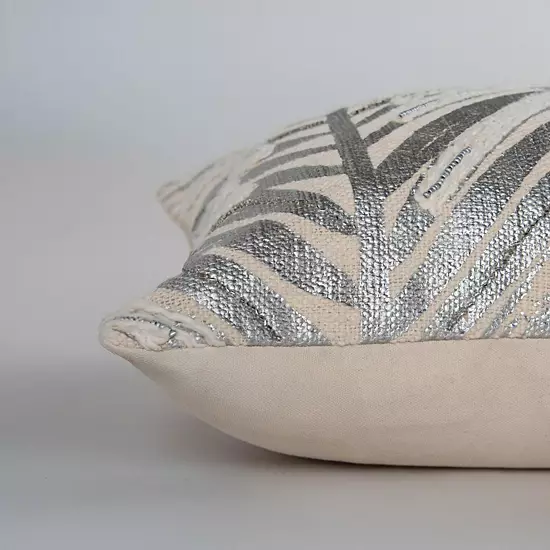Transform your living space into a luxurious retreat with Rizzy Home’s stunning throw pillow. Featuring eye-catching foil palm leaves on a textured backdrop, this chic pillow effortlessly combines modern glam with a relaxed vibe, making it the perfect accent for any sofa or bed.