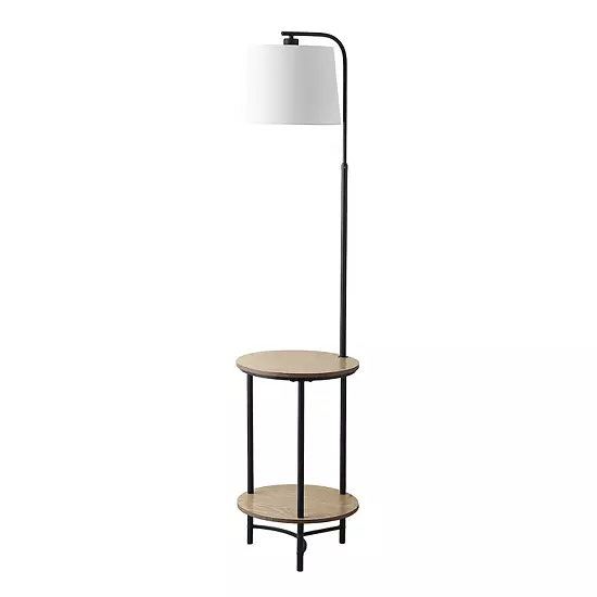 - A matte black body and white linen shade ensures Henley perfectly coexists with any furnishings, and its lower shelf is ideal for books, magazines, or subtle art display