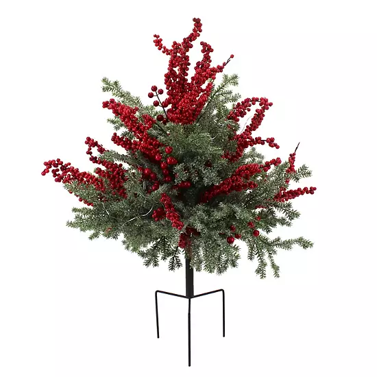Bring a splash of festive cheer to your home with the vibrant and lush arrangement from St. Nicholas Square. This dazzling mix of red berries and evergreen accents creates a stunning focal point, perfect for brightening up any space during the holiday season and beyond.