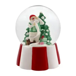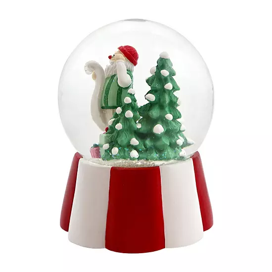 Elevate your holiday decor with this enchanting snow globe from St. Nicholas Square, where Santa joyfully spreads festive cheer amidst snow-kissed trees and wrapped presents. With its whimsical design and charming musical melody, this delightful piece captures the magic of the season, inviting nostalgia and warmth into your home.