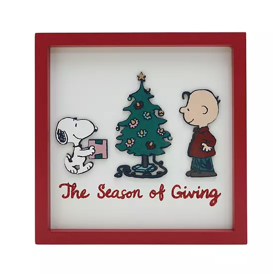 Bring the joy of the holidays into your home with this charming tabletop decor from St. Nicholas Square Peanuts. Featuring beloved characters Charlie Brown and Snoopy alongside the sparkling message “The Season of Giving,” it’s an inviting reminder to cherish friendship and the spirit of the season.