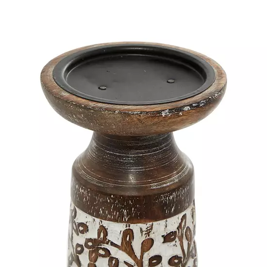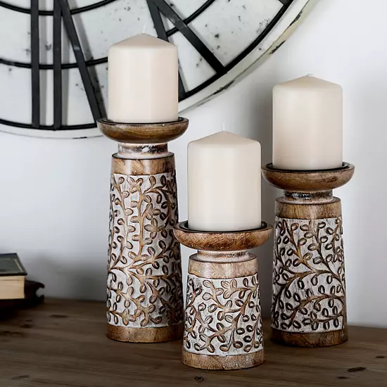 Upgrade your home with this Stella & Eve Rustic Flourish Pattern Candleholder 3-piece Set.