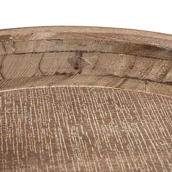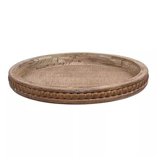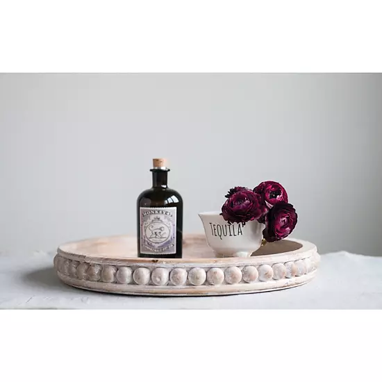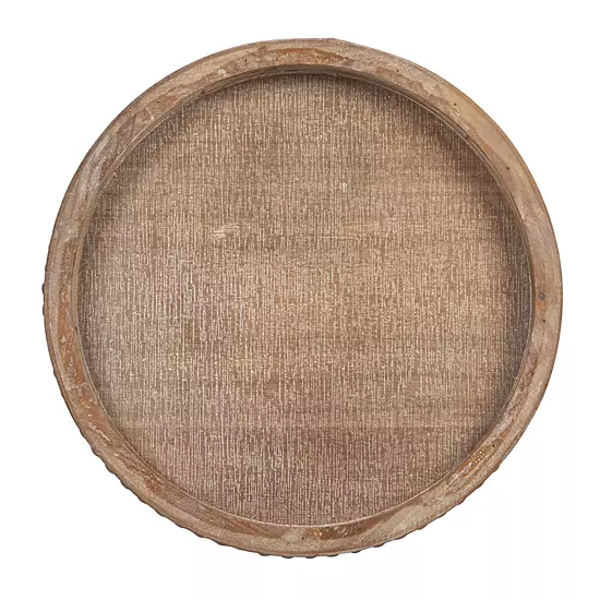 Complement your kitchen with this Storied Home Whitewashed Round Decorative Wood Tray.