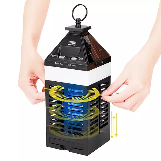 Illuminate your outdoor space with this Techko Solar Bug Zapper Lantern With 360º Easy-Clean Brush.